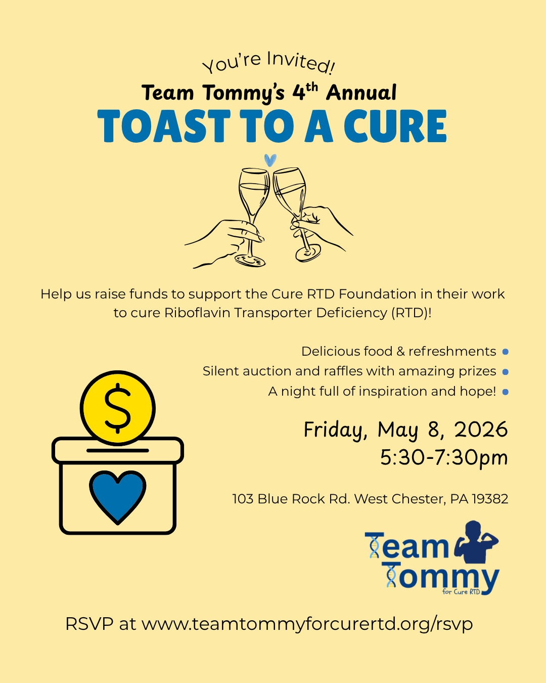 Team Tommy for Cure RTD is a 501(c)(3) non-profit organization dedicated to supporting the Cure RTD Foundation in their mission to find a cure for Riboflavin Transporter Deficiency (RTD). RTD is a genetic, neurodegenerative, and life-shortening disease. It is also extremely rare with only about 400 people in the world with a confirmed diagnosis. Cure RTD saves lives through education, advances in treatment, and the search for a cure for RTD. Their ultimate goal is to provide a better future for those impacted by this terrible disease.